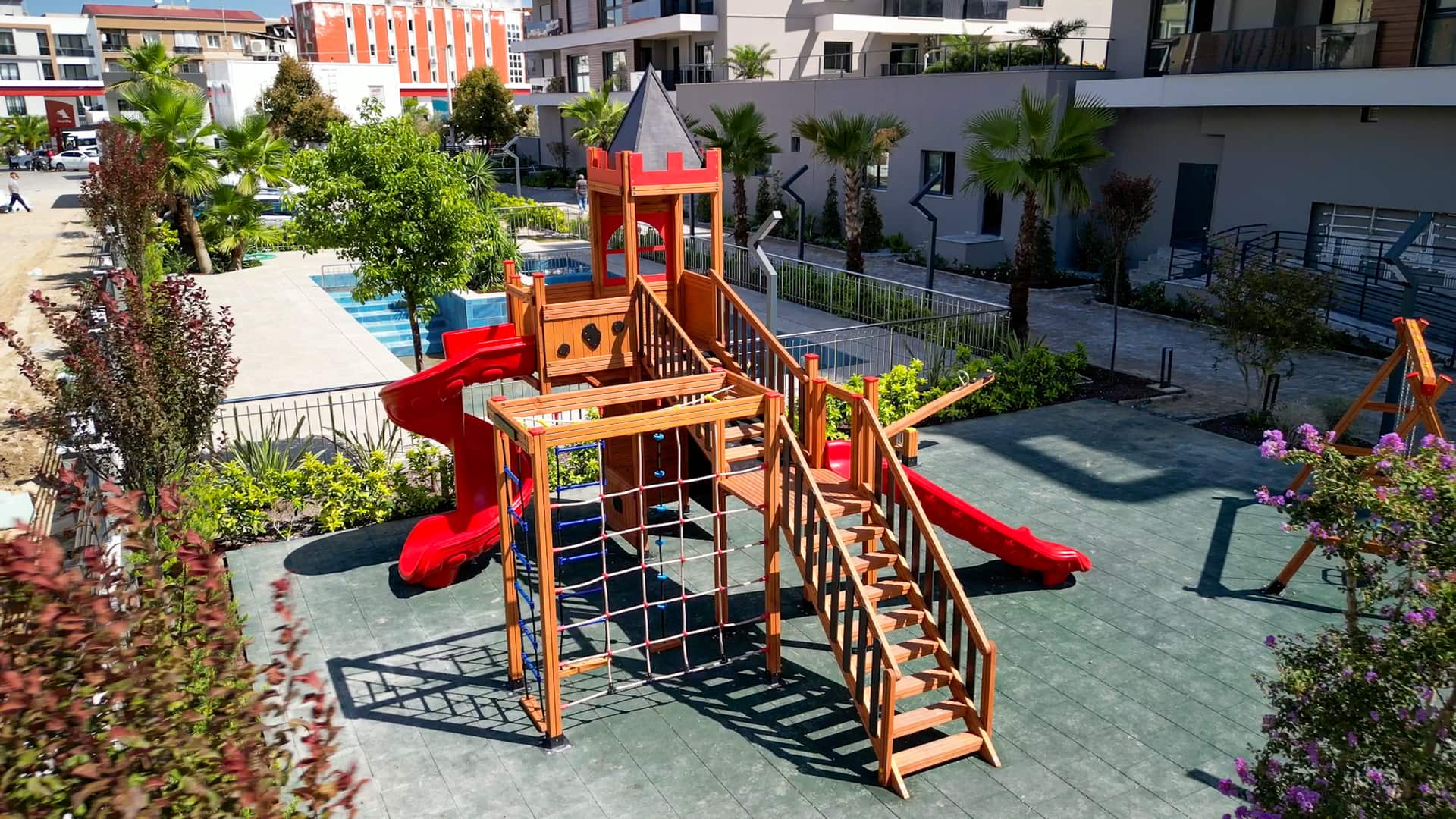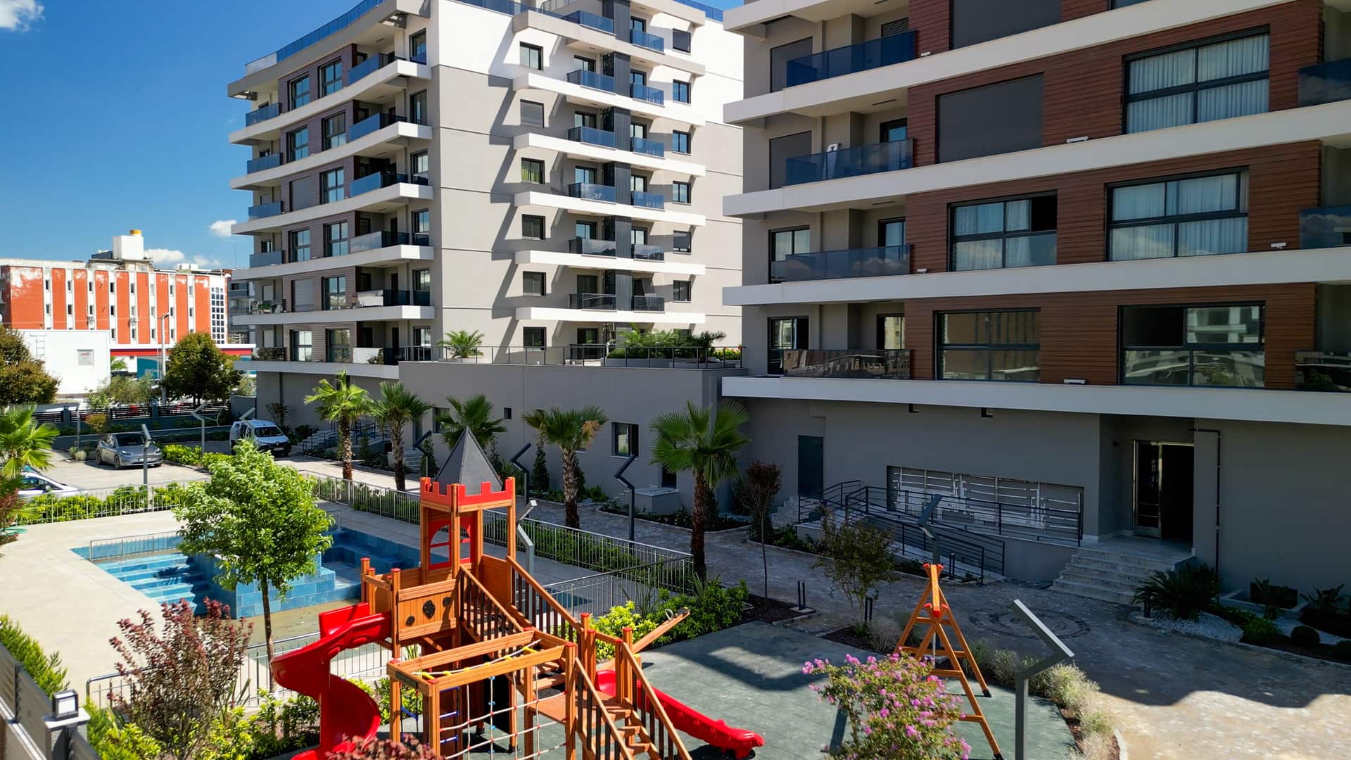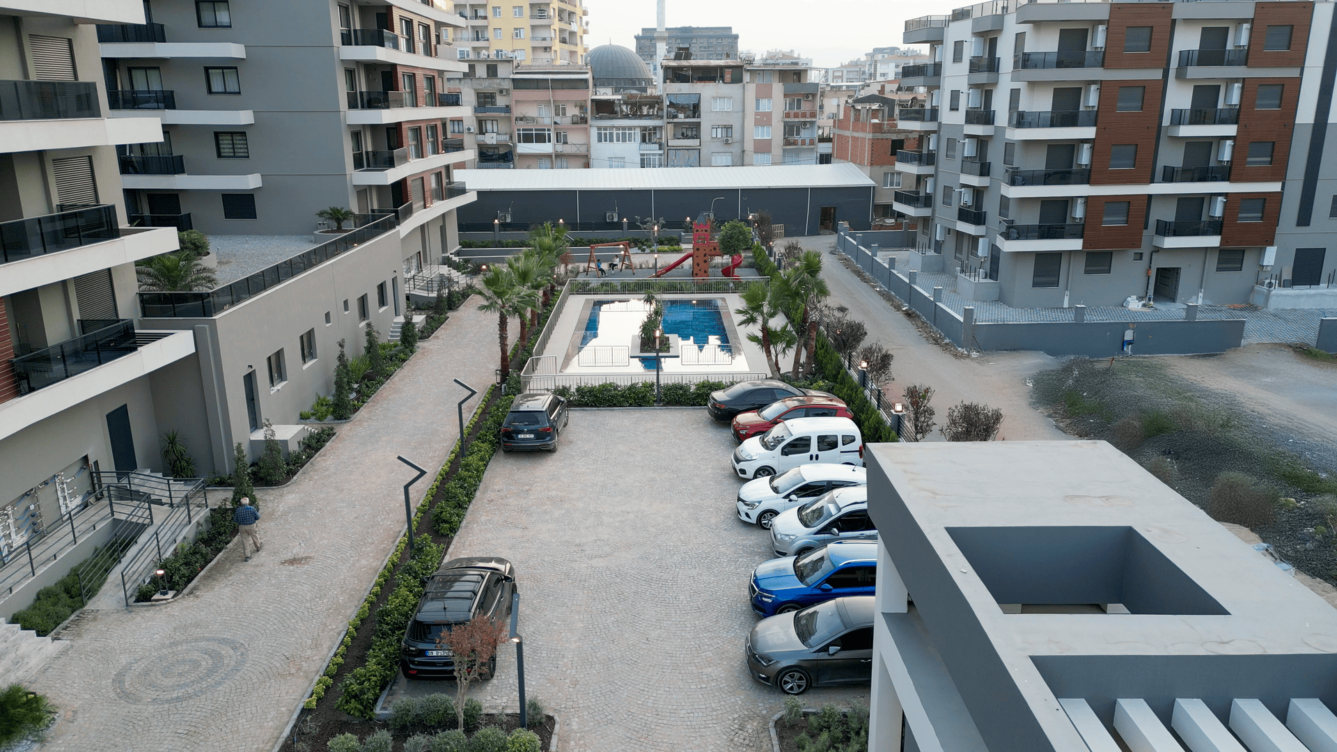 Geniş ve ferah peyzaj alanı, açık havuz, kapalı otopark ve yüksek güvenlik hizmeti ile siz ve aileniz için ayrıcalıklı site hayatının kapılarını açıyor.